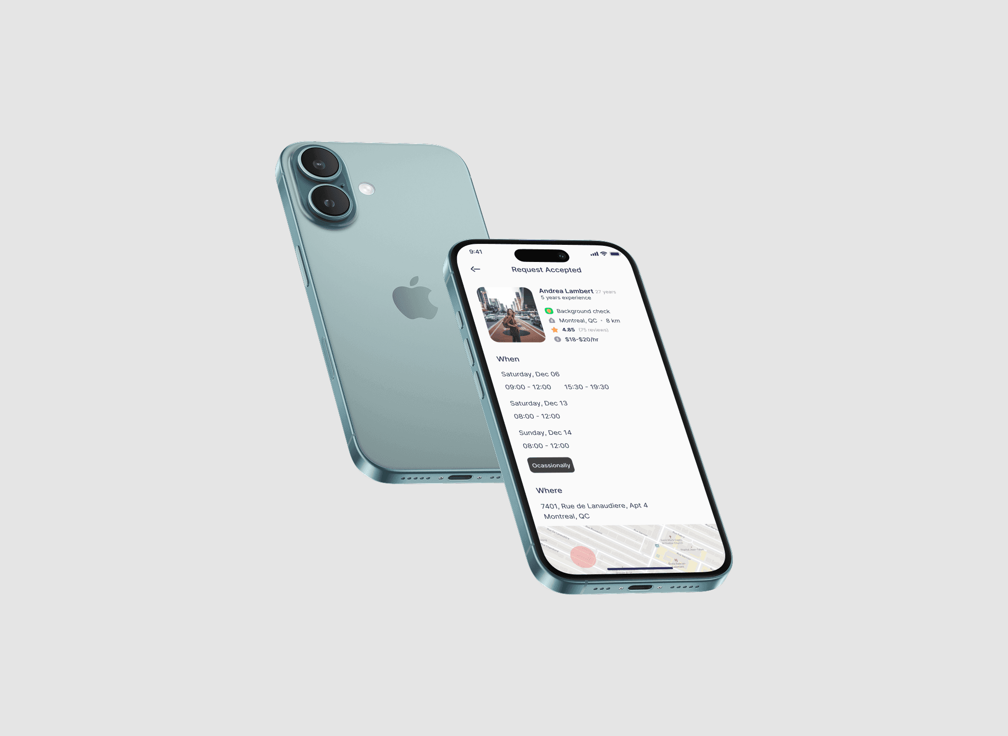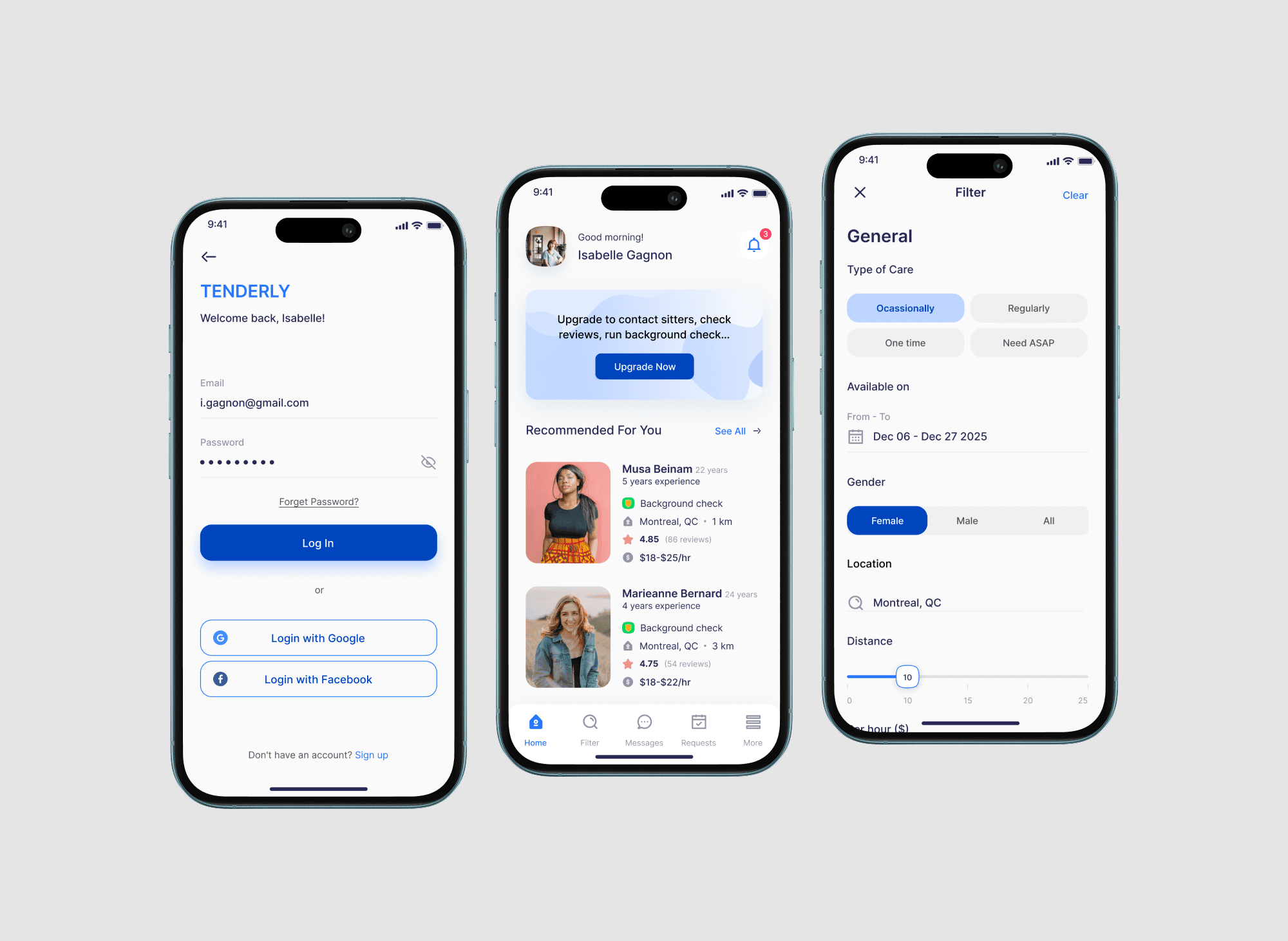 Tenderly Deliverables - Establishing Trust: A verification system to ensure child safety. - Streamlining Connections: A platform that reduces the time spent searching and evaluating sitters. - User-Centric Design: An intuitive interface that facilitates easy onboarding and booking. - Improving Transparency: Defining clear job responsibilities and working hours upfront to prevent misunderstandings. Impact Tenderly concept goes beyond typical babysitting marketplaces by introducing a verification-first trust system. It also reduces friction by structuring hiring conditions upfront, addressing scope creep and expectation mismatch. Finally, it positions childcare hiring as a streamlined end-to-end workflow rather than just a directory for discovery and messaging. Next steps / What I would measure Booking completion rate. Time to hire a sitter. Trust perception score. Repeat bookings.
